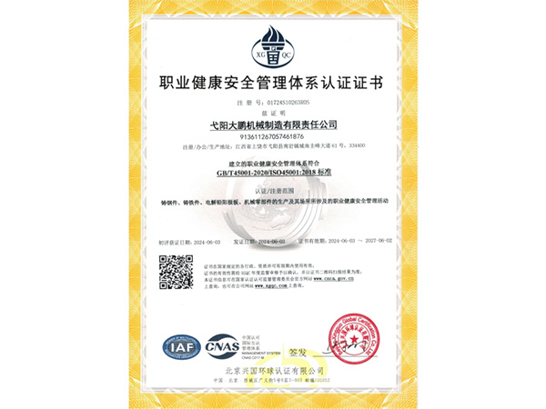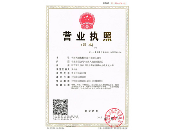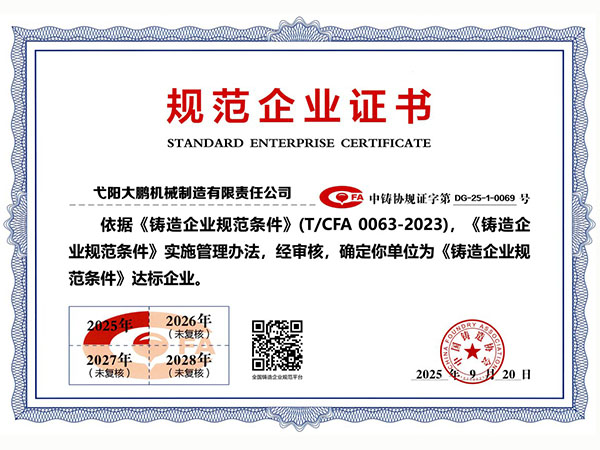 • 09-28弋陽大鵬機械制造有限責(zé)任公司成功取得規(guī)范